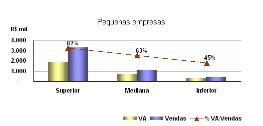 Gráfico 02 - Valor Adicionado, Vendas e % VA/Vendas - Pequenas empresas