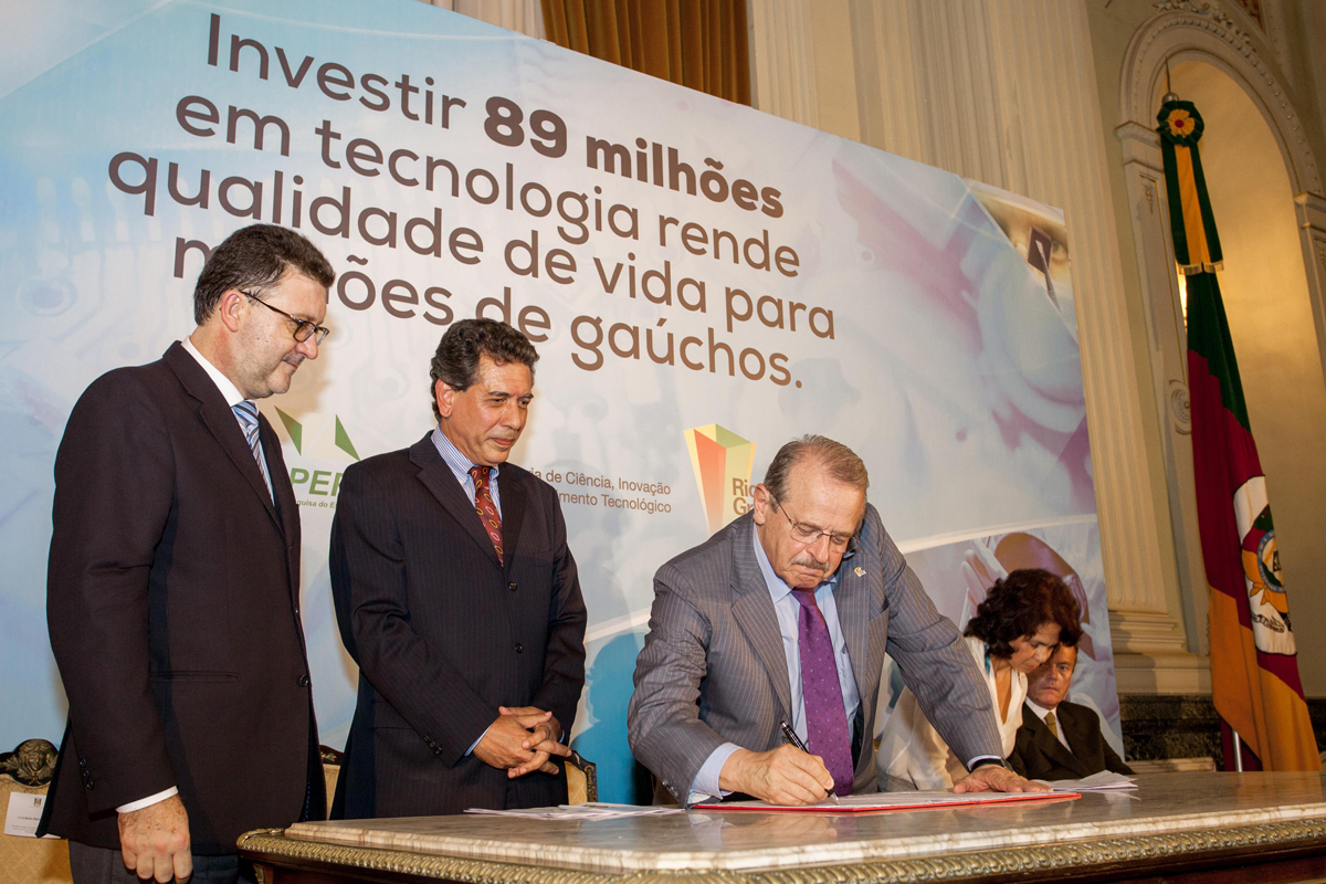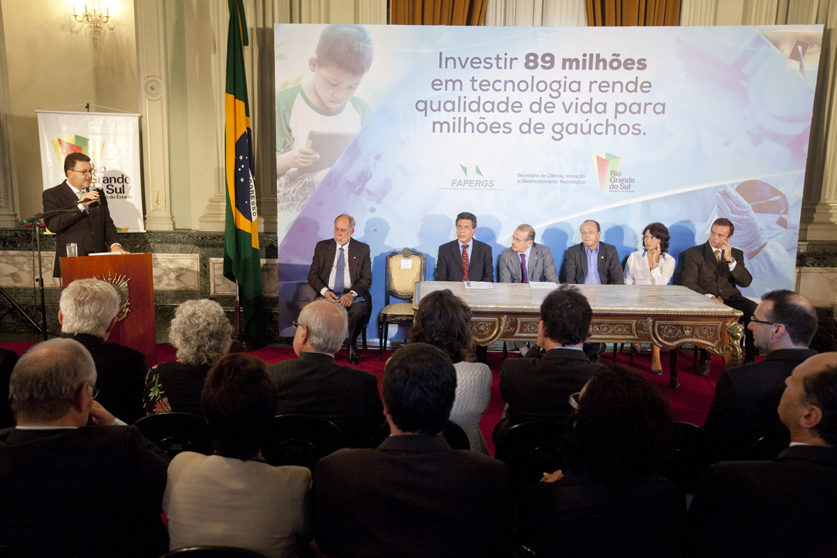 O governo do Rio Grande do Sul assinou, nesta quinta-feira (4), 15 editais de fomento a inovação, ciência e tecnologia no estado, com recursos de R$ 89 milhões. Além do governador Tarso Genro, a cerimônia, no Palácio Piratini, teve a presença do ministro da Ciência, Tecnologia e Inovação em exercício, Luiz Antonio Rodrigues Elias, e do presidente da Coordenação de Aperfeiçoamento de Pessoal de Nível Superior (Capes/MEC), Jorge Almeida Guimarães, além de representantes de universidades, empresas, polos e parques tecnológicos e comunidade acadêmica voltada à área de tecnologia.