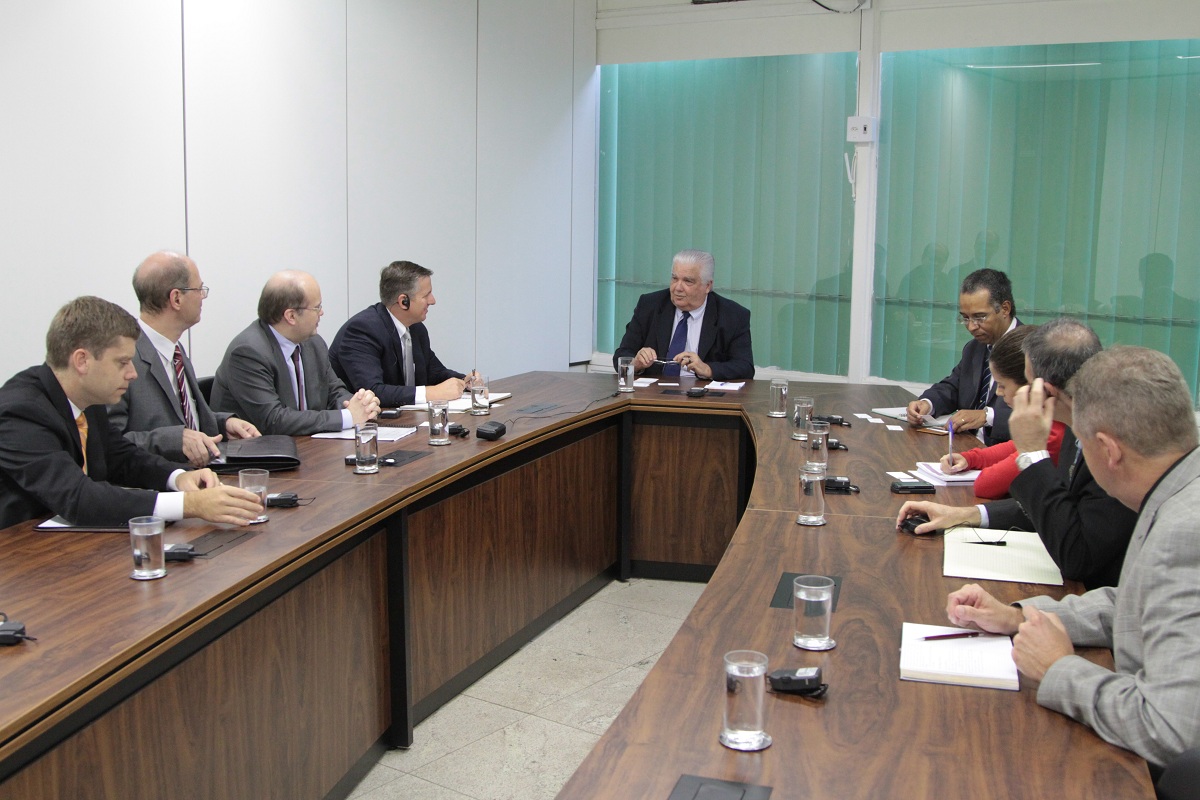 Ministro Raupp (centro) reúne-se com executivos da Motorola para discutir investimentos no país. Foto: Augusto Coelho/Ascom do MCTI