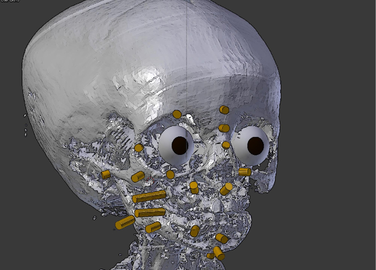 Cícero Moraes foi convidado para o projeto pelo grupo italiano de arqueologia Arc-Team, com o qual já colaborava e que recebeu a encomenda do museu. “O pessoal da Itália me mandou o crânio digitalizado. A imagem digital foi gerada a partir de fotos da réplica em bronze do crânio, produzida em 1981”, conta. “Aí, fui criando os músculos, fazendo a modelagem anatômica com o programa computacional Blender.”